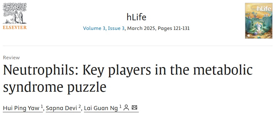 Lai Guan Ng Senior researcher Corresponding author Institution: Shanghai Immune Therapy Institute Research interests: Intrinsic immunity, including the function and mechanism of myeloid cells in steady state and pathological state Citation format:Yaw HP, Devi S, Ng LG. Neutrophils: Key players in the metabolic syndrome puzzle. hLife 2025; 3: 121–131.